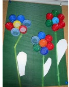 5. Направите са дететом цвет од пластичних чепова, сламчица и папира.